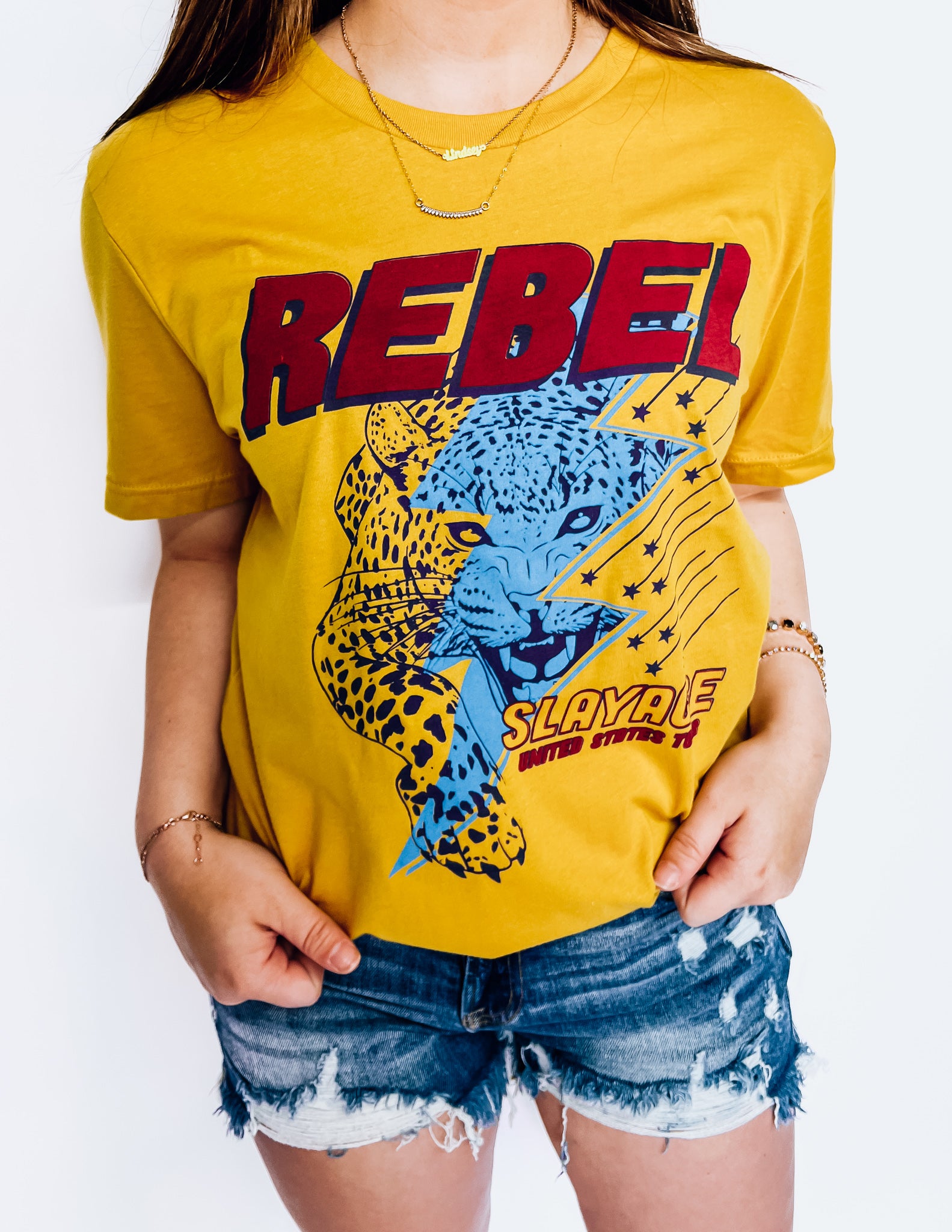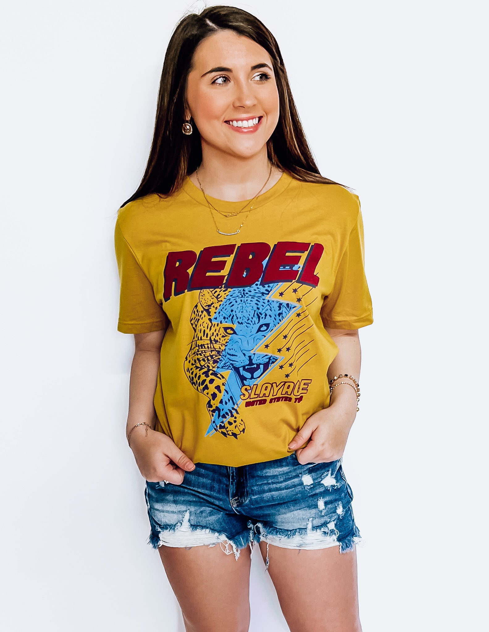 REBEL LEOPARD GRAPHIC TEE + Premium Cotton + 6.1 oz., 100% ring spun cotton + Soft-washed garment-dyed fabric + Unisex Sizing + Classic Fit
