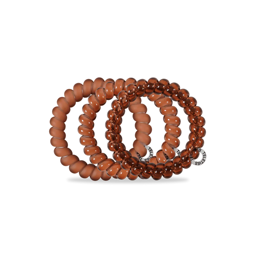 Hold your hair in place with ease and style! TELETIES Pantone Color of the Year, Mocha Mousse Hair Ties offer a strong grip without damage, doubling as a chic wrist accessory when not in use. Your new favorite hair essentials all year round.