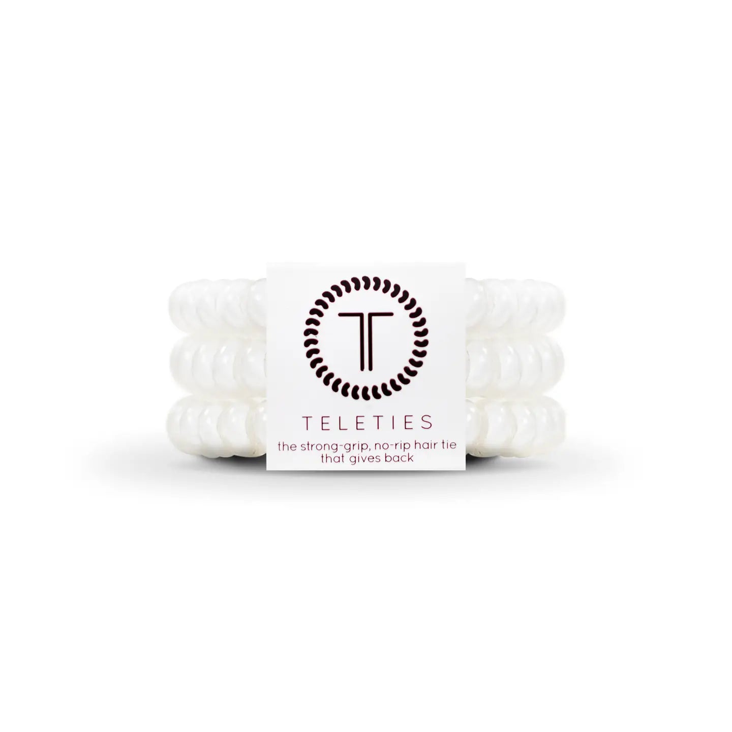 Coconut White Small Hair Ties in White offer a strong grip without damage, doubling as a chic wrist accessory when not in use. Your new favorite hair essentials all year round.