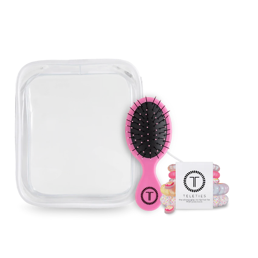 The TELETIES Bundle is the perfect gift set for Easter or Spring! It includes the newest TELETOTES, a mini hot pink hair brush, and the "Don't Worry be Hoppy" Mixed pack