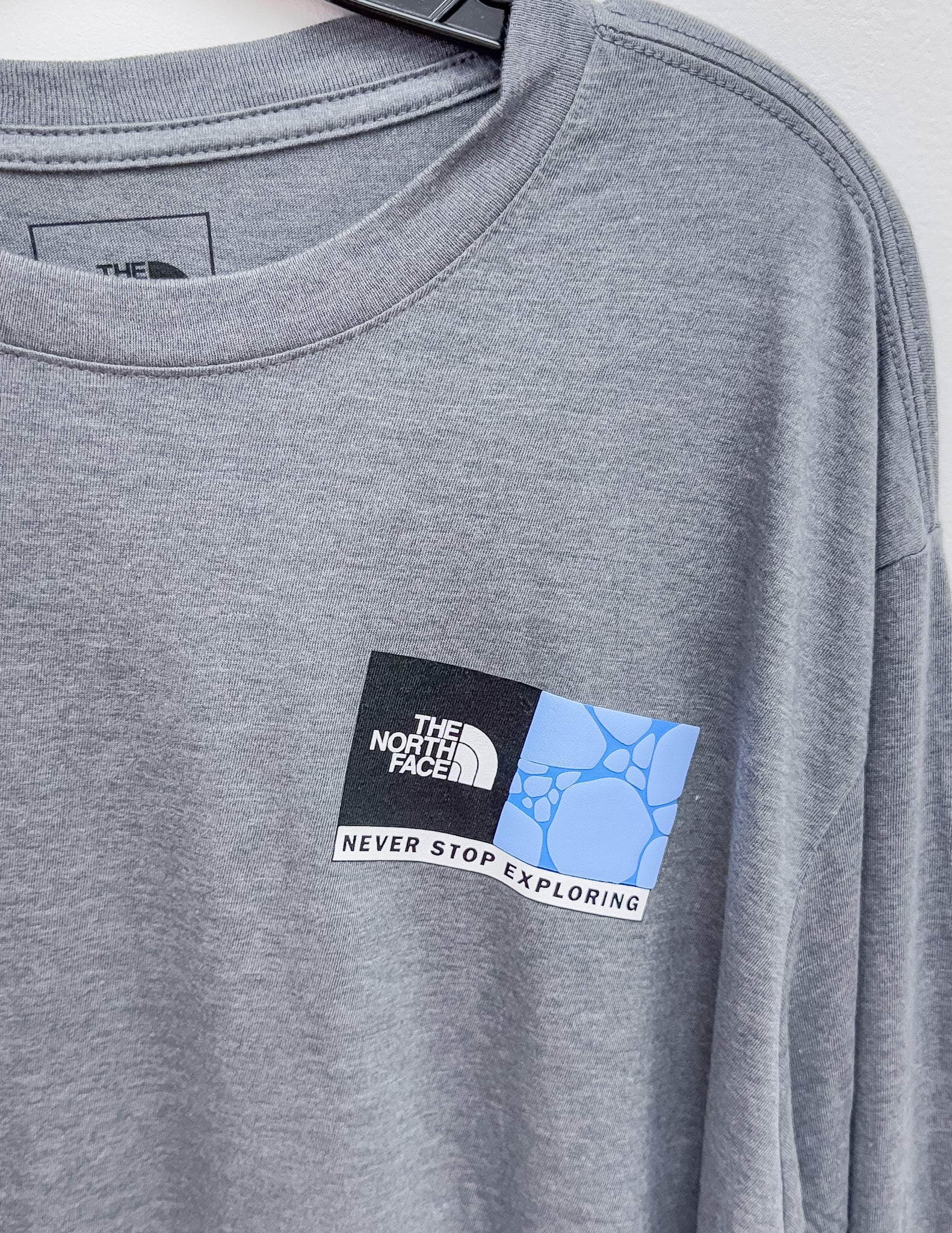 small logo on the front, large logo on the back