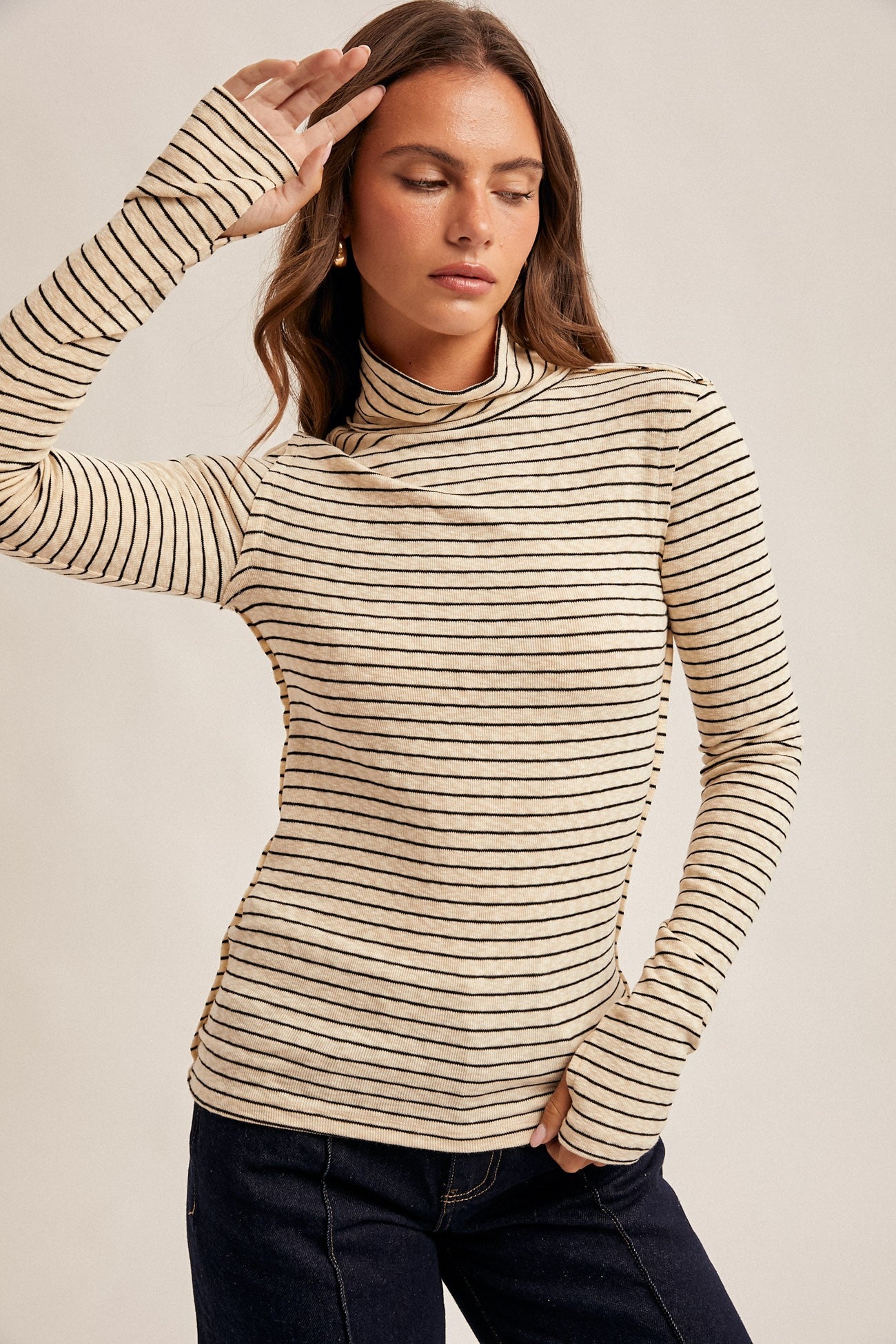 STRIPE TURTLE NECK LONG SLEEVE TOP WITH THUMB HOLES