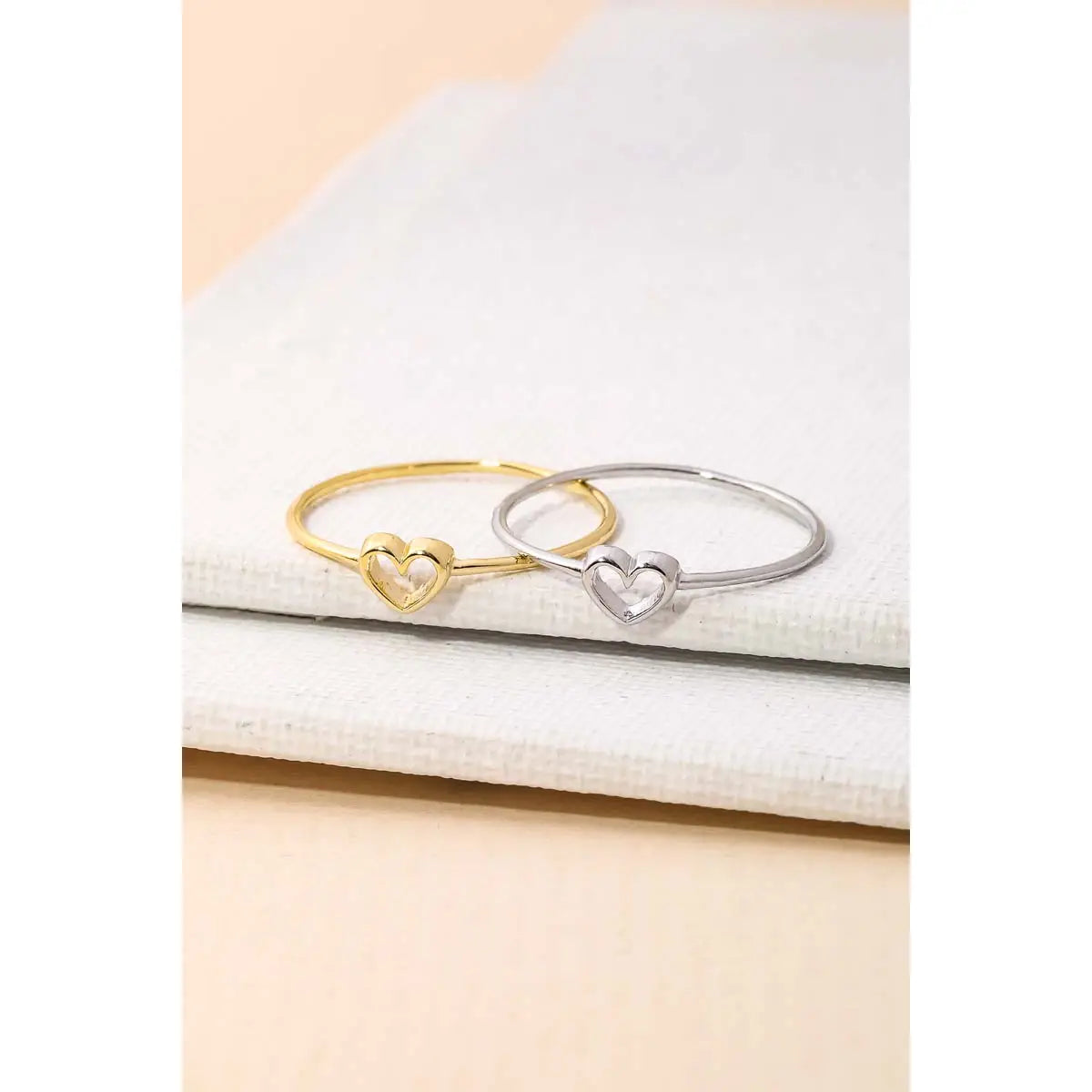 This must have trending accessory that has a unique dainty open heart shape fashion ring design. Perfect for formal events! Available in G and S.