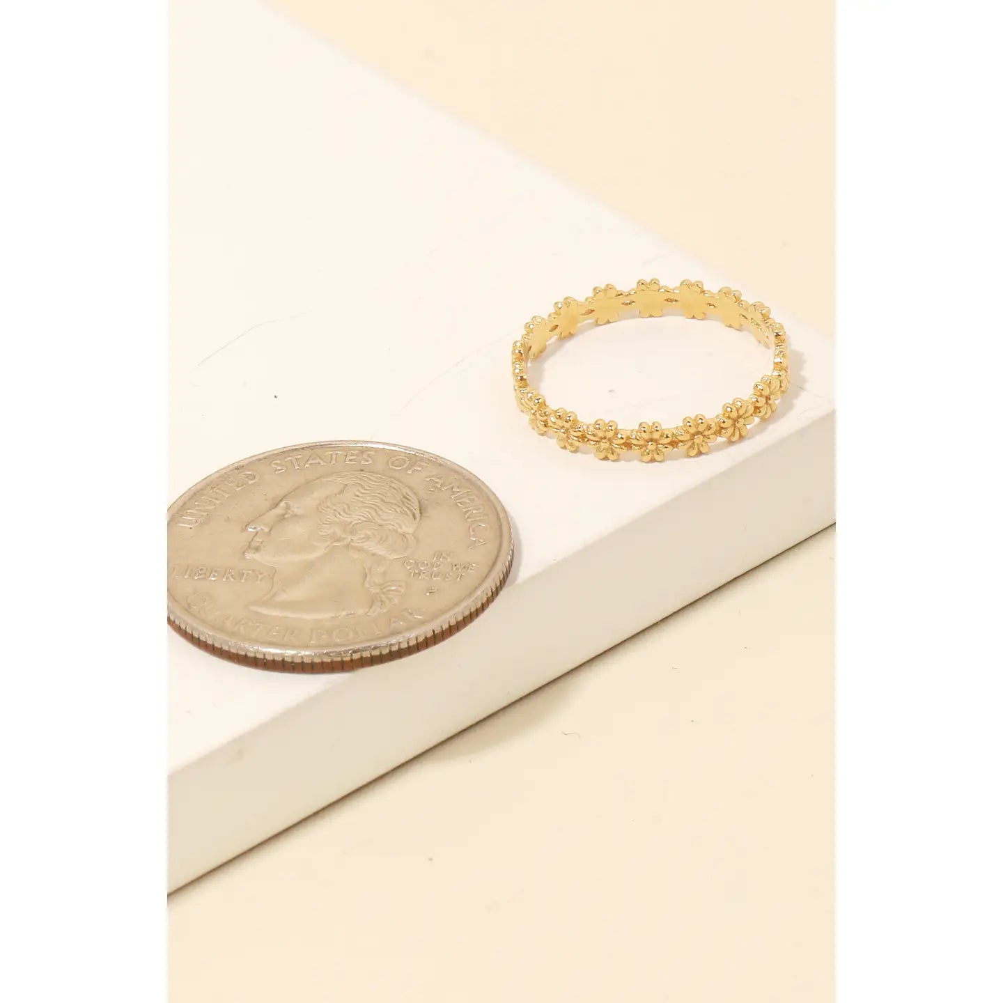 Perfectly polished and endlessly versatile, this Ring boasts a magnificent multi flower band ring design. Add some personality to your outfit with this stylish accessory. Ring Size 6.75 This Ring is made with 100% Brass.