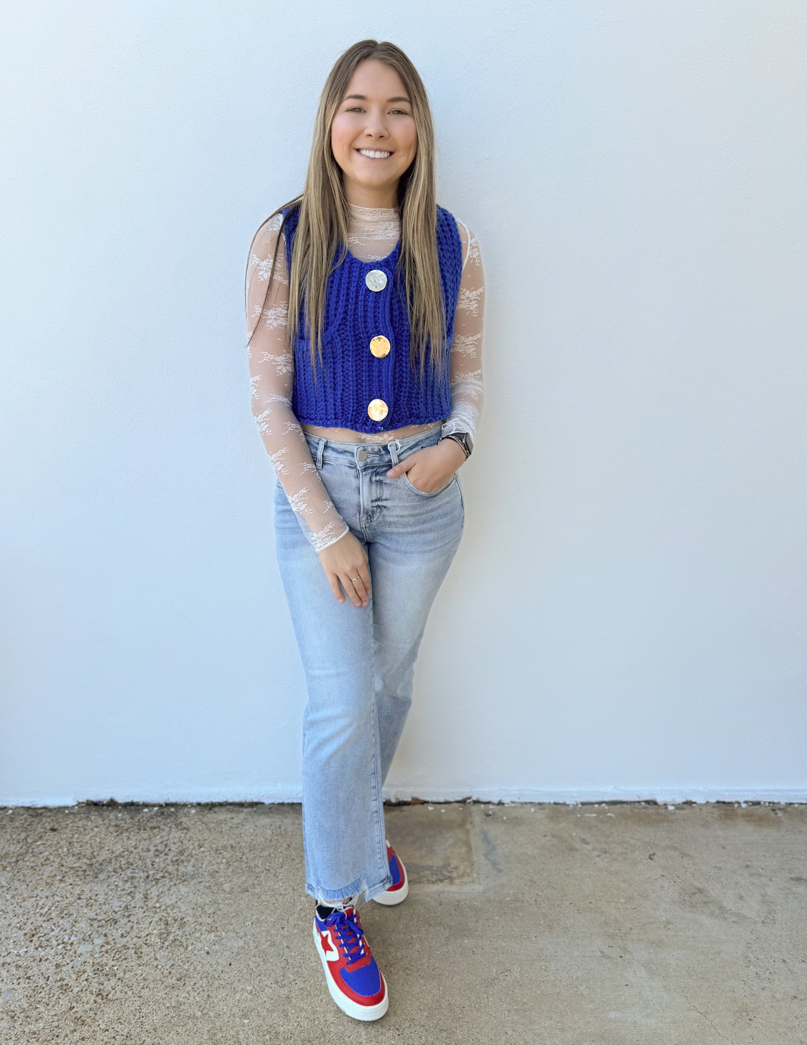 * Ladies Sweater Vest Model Fitting: * Model wearing size S