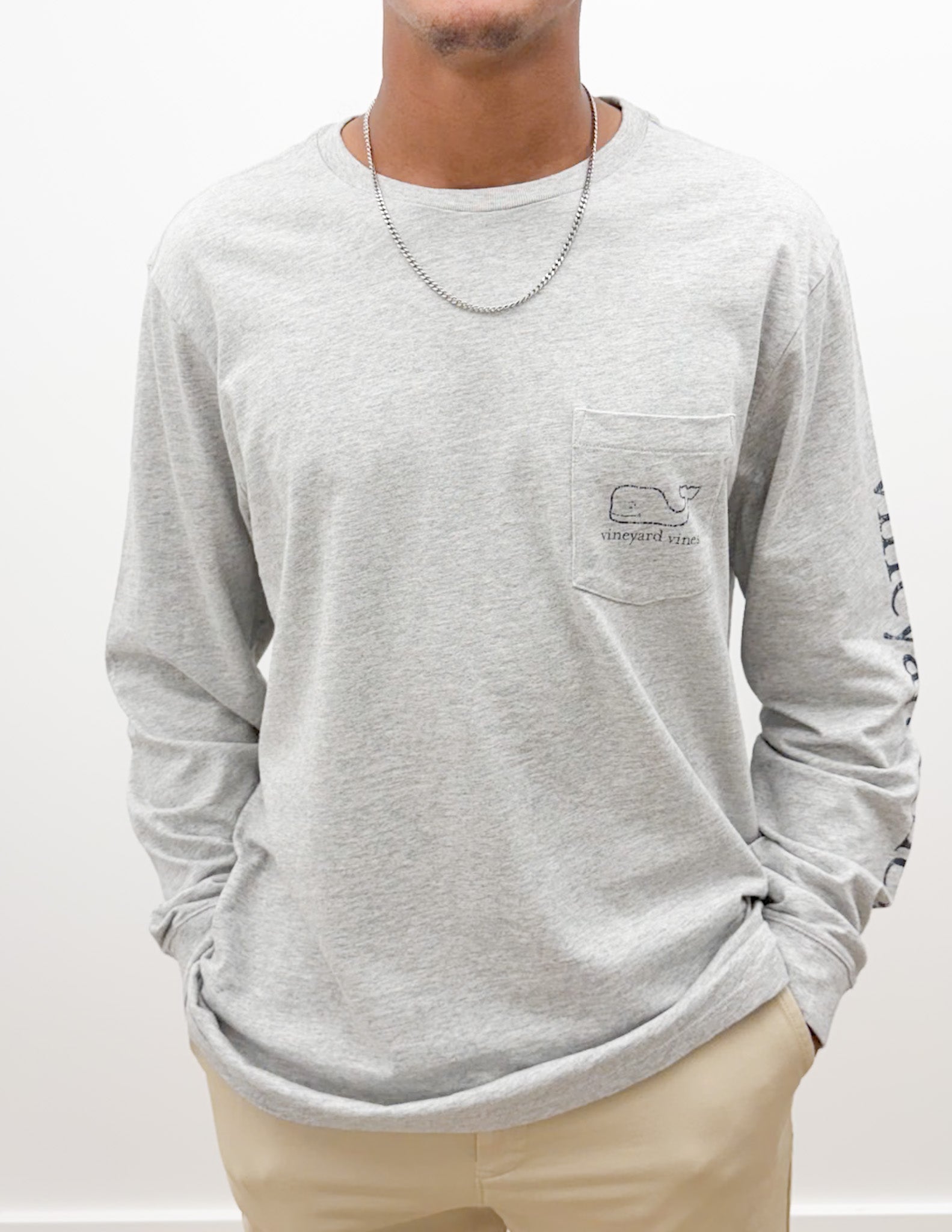 Vineyard Vines Vintage Whale LS Tee in Grey Heather