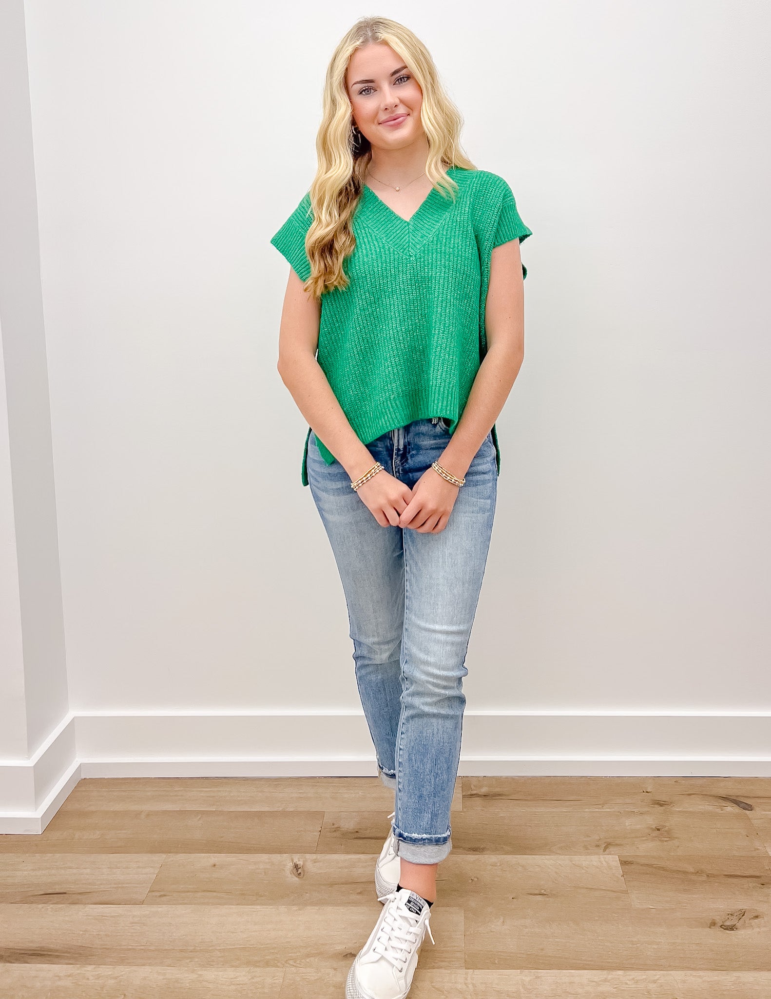 I Need To Know Sweater Vest with Side Slit in Kelly Green