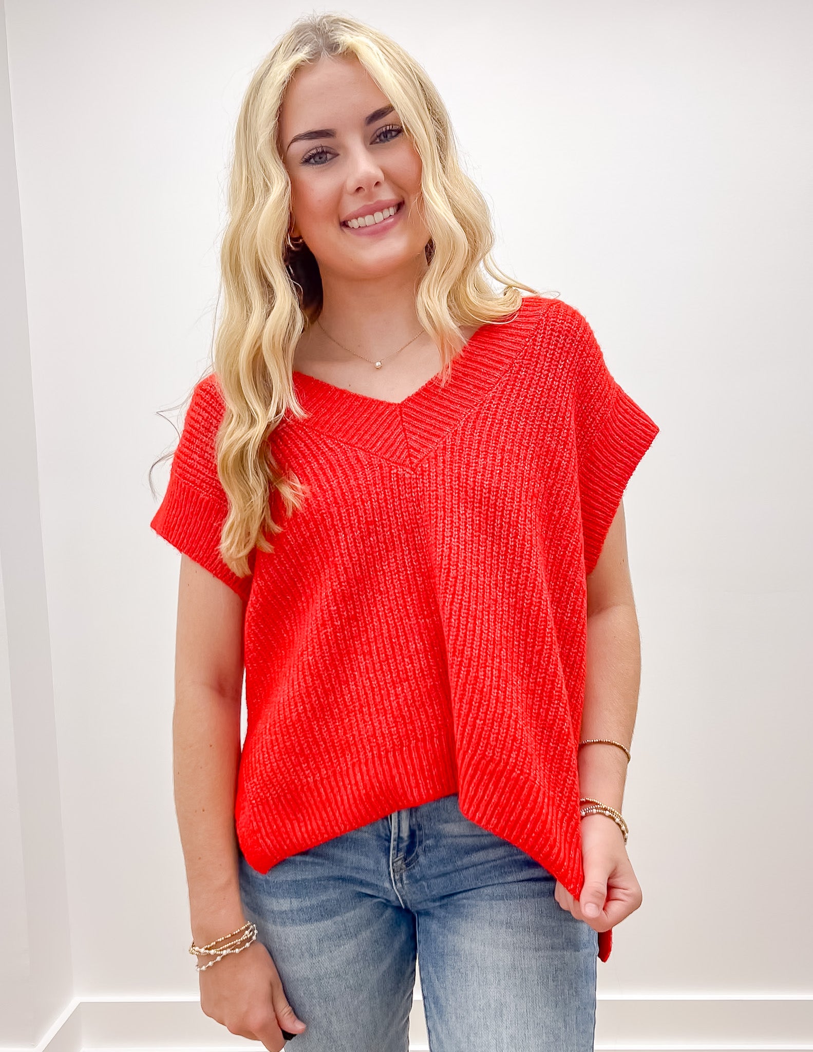 I Need To Know Sweater Vest with Side Slit in Ruby