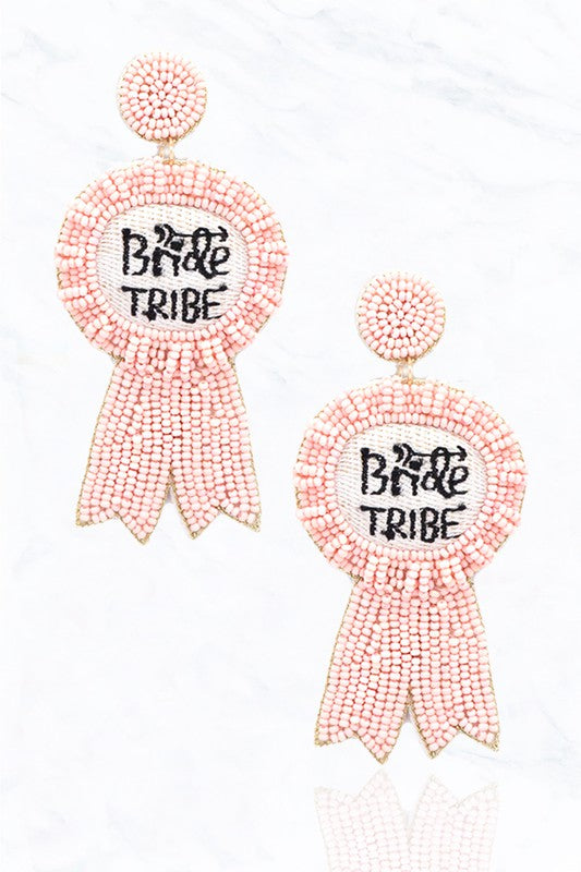 "Bride Tribe" Beaded Ribbon Fabric Post Drop Earrings Lead & Nickel Compliant