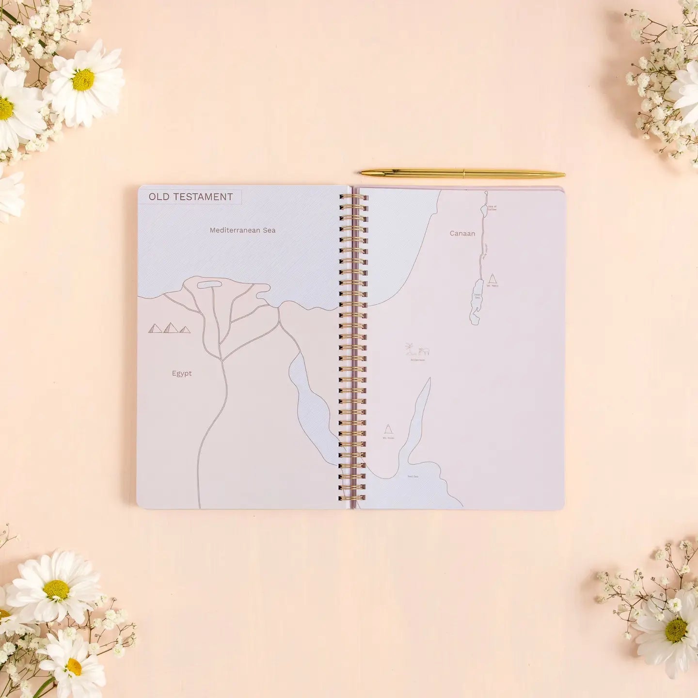 Made for taking sermon and lesson notes, this foiled, spiral-bound, notebook was created to celebrate faith. With dedicated areas to note the date, speaker, message, and relevant verses as well as a double-sided interior pocket and three verse art print pages, it’s the perfect confirmation, Easter or Christmas gift. Its Old Testament and Tribes of Israel maps with New Testament overlay and biblical timeline make it a great teaching tool for bible study, church camps and Vacation Bible School. This journal is a staple for Christian book stores and gift shops, fostering a love for scripture and encouraging new growth in Jesus. As part of our goal to encourage relationships with the Lord, we donate a portion of our proceeds to Sacred Selections, an adoption foundation dedicated to aiding Christian parents in providing children with loving, God-centered homes. 6.75" x 10.5" 150 pages 1 Pocket Page 3 Art Print Pages 1 Old Testament map 1 Tribes of Israel map with New Testament Overlay